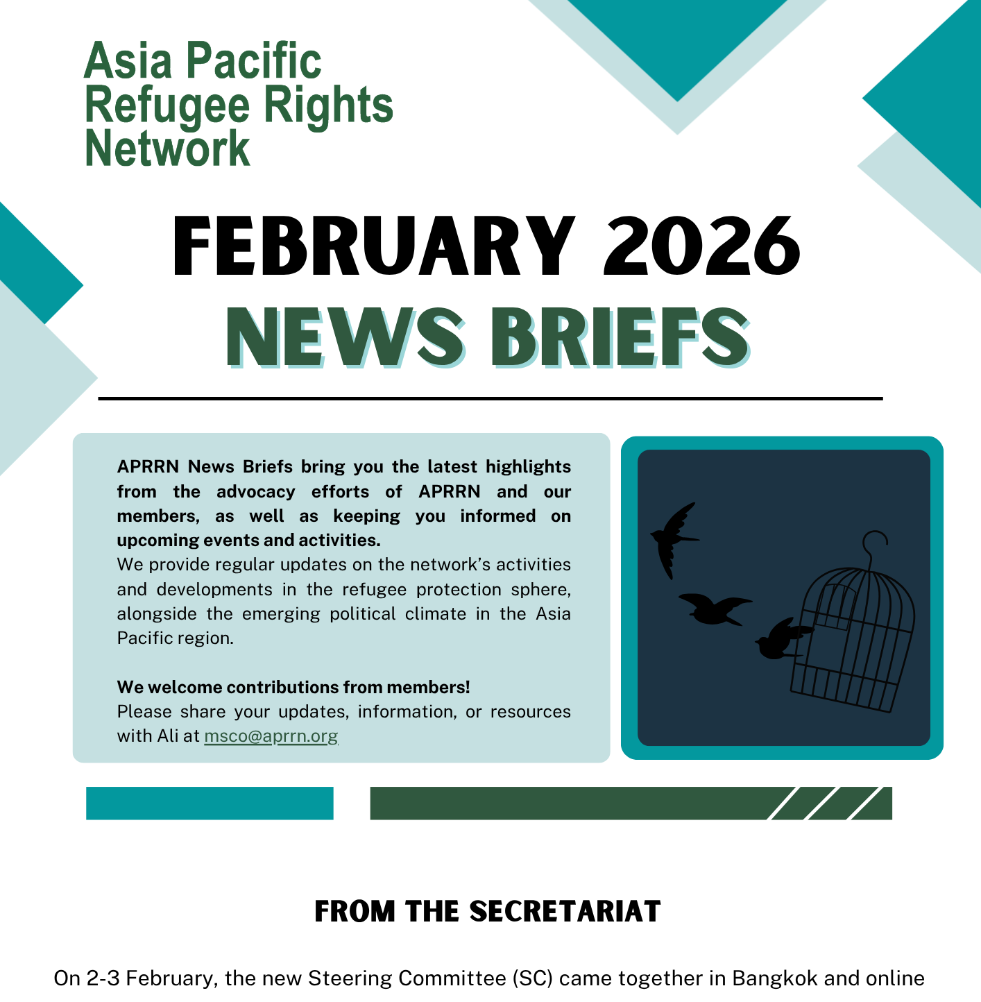 Our News Briefs bring you the latest highlights from the advocacy efforts of APRRN and our members, as well as keeping you informed on upcoming events and activities. We strive to provide regular updates on the network’s activities in the refugee protection sphere, alongside the emerging political climate in the Asia Pacific region.