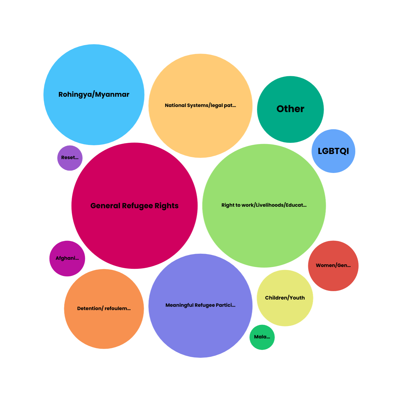 The meeting began with introductions and updates from the network's leadership, including newly appointed members of our Thai board and a review of governance and financial matters. Presentations then followed on the implementation of the Strategic Plan 2023-2027, covering operational updates, thematic working group updates, and collective advocacy efforts and outcomes across the Asia-Pacific region. There was also a presentation and voting of six Thematic Working Groups, which will form part of APRRN’s next Steering Committee. Please see figure 1, which shows the key themes of our advocacy we have focused on in 202 and which are in line with the advocacy priorities laid out in APCRR 9 in 2023.